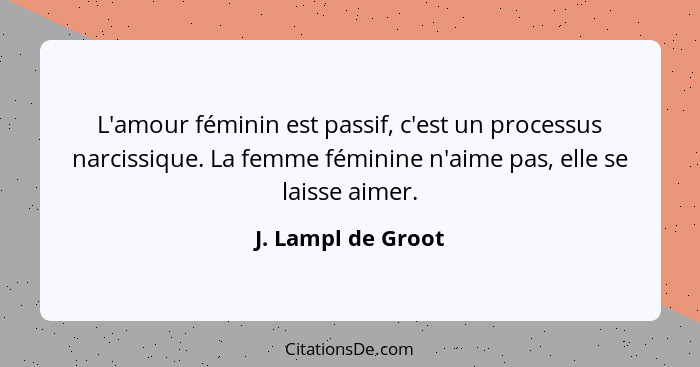 L'amour féminin est passif, c'est un processus narcissique. La femme féminine n'aime pas, elle se laisse aimer.