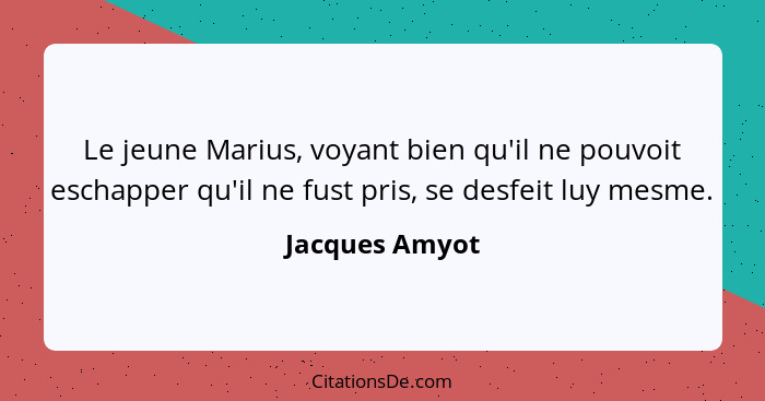 Le jeune Marius, voyant bien qu'il ne pouvoit eschapper qu'il ne fust pris, se desfeit luy mesme.