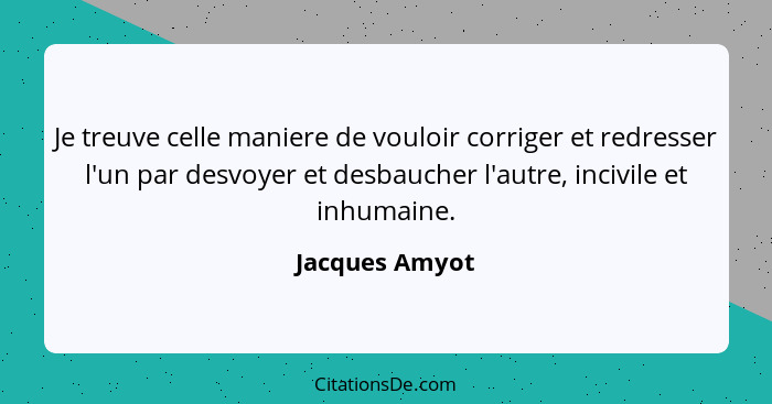Je treuve celle maniere de vouloir corriger et redresser l'un par desvoyer et desbaucher l'autre, incivile et inhumaine.