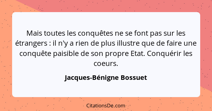 Mais toutes les conquêtes ne se font pas sur les étrangers : il n'y a rien de plus illustre que de faire une conquête paisible de son propre Etat. Conquérir les coeurs.