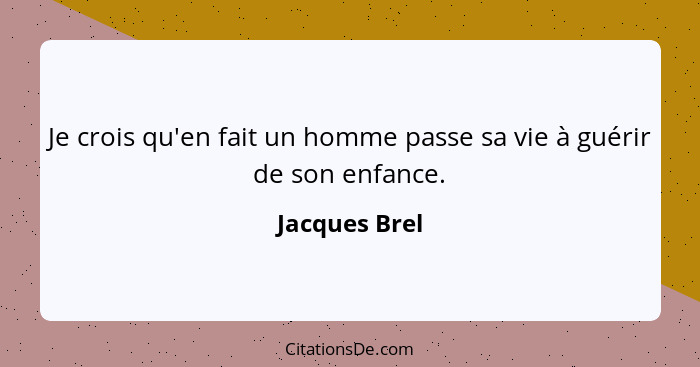 Je crois qu'en fait un homme passe sa vie à guérir de son enfance.