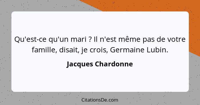 Qu'est-ce qu'un mari ? Il n'est même pas de votre famille, disait, je crois, Germaine Lubin.