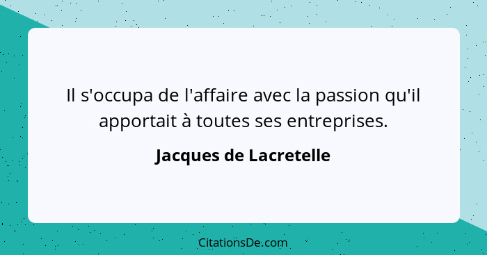 Il s'occupa de l'affaire avec la passion qu'il apportait à toutes ses entreprises.