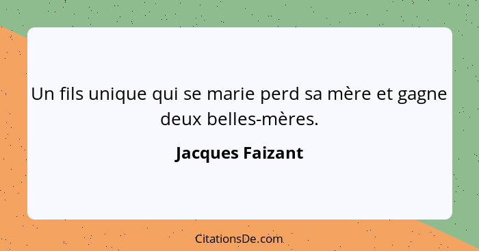 Un fils unique qui se marie perd sa mère et gagne deux belles-mères.