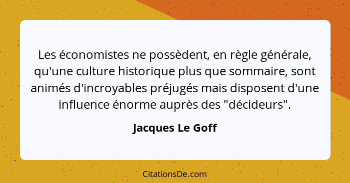 Les économistes ne possèdent, en règle générale, qu'une culture historique plus que sommaire, sont animés d'incroyables préjugés mais disposent d'une influence énorme auprès des "décideurs".