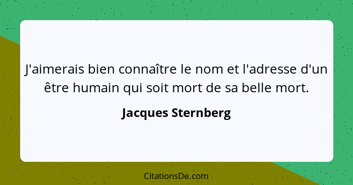 J'aimerais bien connaître le nom et l'adresse d'un être humain qui soit mort de sa belle mort.