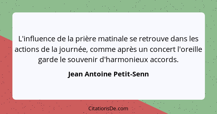 L'influence de la prière matinale se retrouve dans les actions de la journée, comme après un concert l'oreille garde le souvenir d'harmonieux accords.
