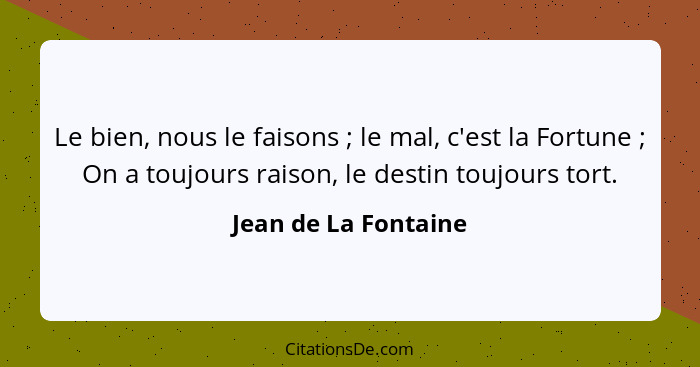 Le bien, nous le faisons ; le mal, c'est la Fortune ; On a toujours raison, le destin toujours tort.