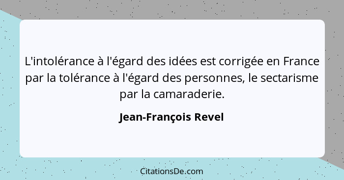 L'intolérance à l'égard des idées est corrigée en France par la tolérance à l'égard des personnes, le sectarisme par la camaraderie.