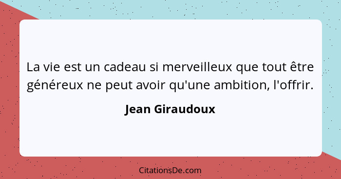 La vie est un cadeau si merveilleux que tout être généreux ne peut avoir qu'une ambition, l'offrir.