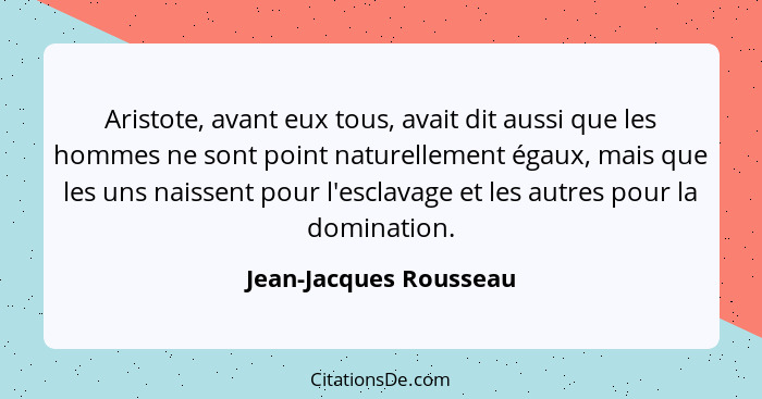 Aristote, avant eux tous, avait dit aussi que les hommes ne sont point naturellement égaux, mais que les uns naissent pour l'esclavage et les autres pour la domination.