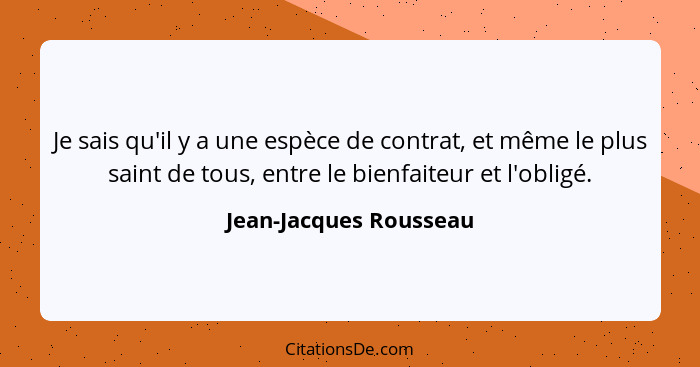 Je sais qu'il y a une espèce de contrat, et même le plus saint de tous, entre le bienfaiteur et l'obligé.