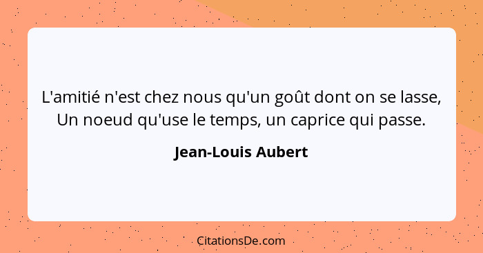 L'amitié n'est chez nous qu'un goût dont on se lasse, Un noeud qu'use le temps, un caprice qui passe.