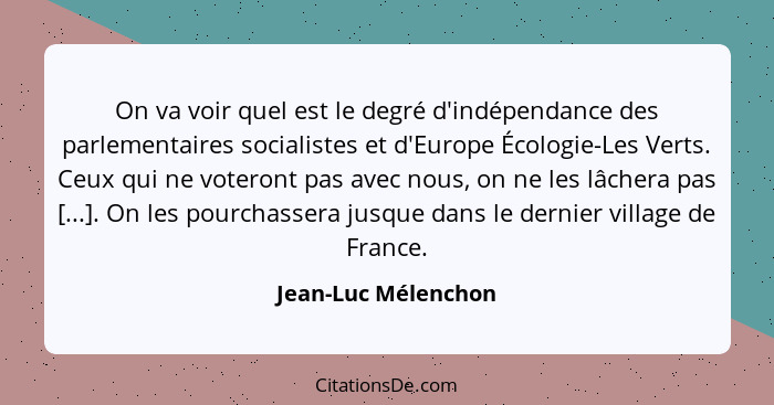On va voir quel est le degré d'indépendance des parlementaires socialistes et d'Europe Écologie-Les Verts. Ceux qui ne voteront pas avec nous, on ne les lâchera pas [...]. On les pourchassera jusque dans le dernier village de France.