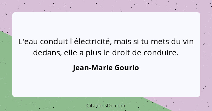 L'eau conduit l'électricité, mais si tu mets du vin dedans, elle a plus le droit de conduire.