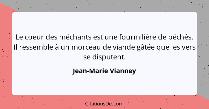 Le coeur des méchants est une fourmilière de péchés. Il ressemble à un morceau de viande gâtée que les vers se disputent.