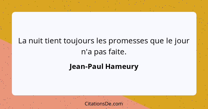 La nuit tient toujours les promesses que le jour n'a pas faite.