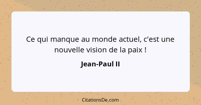 Ce qui manque au monde actuel, c'est une nouvelle vision de la paix !