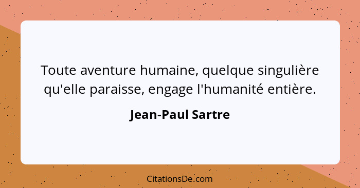 Toute aventure humaine, quelque singulière qu'elle paraisse, engage l'humanité entière.