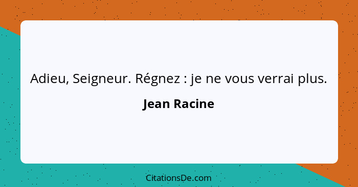 Adieu, Seigneur. Régnez : je ne vous verrai plus.