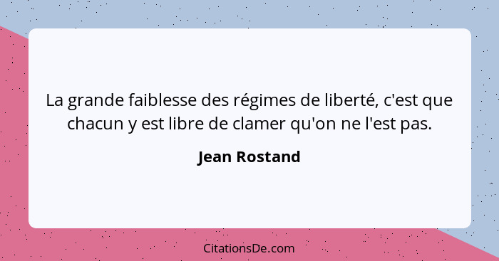 La grande faiblesse des régimes de liberté, c'est que chacun y est libre de clamer qu'on ne l'est pas.