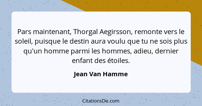 Pars maintenant, Thorgal Aegirsson, remonte vers le soleil, puisque le destin aura voulu que tu ne sois plus qu'un homme parmi les hommes, adieu, dernier enfant des étoiles.