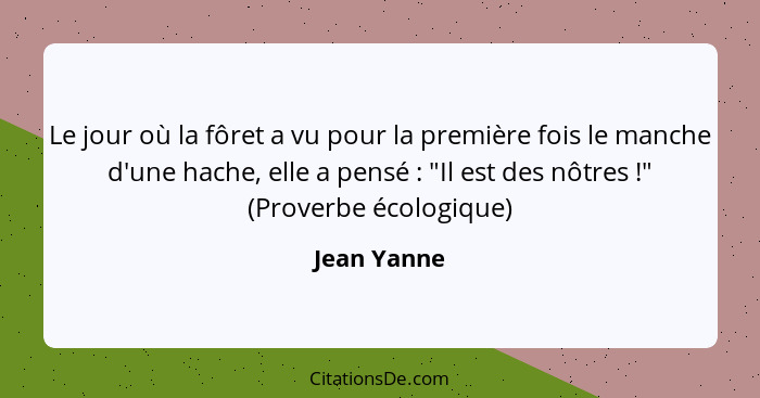 Le jour où la fôret a vu pour la première fois le manche d'une hache, elle a pensé : "Il est des nôtres !" (Proverbe écologique)