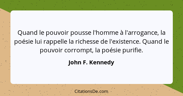 Quand le pouvoir pousse l'homme à l'arrogance, la poésie lui rappelle la richesse de l'existence. Quand le pouvoir corrompt, la poésie purifie.