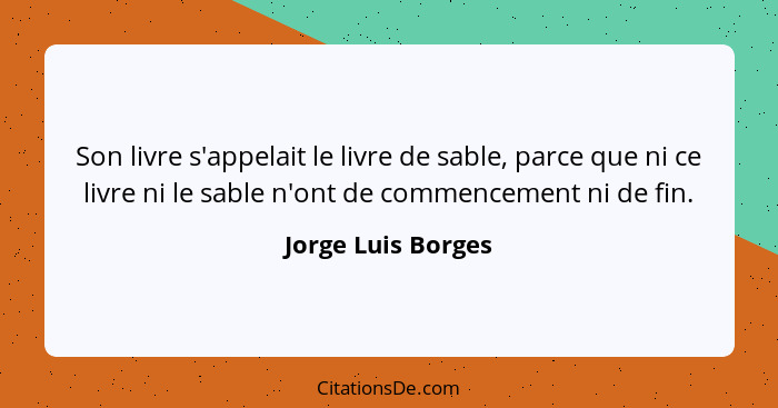 Son livre s'appelait le livre de sable, parce que ni ce livre ni le sable n'ont de commencement ni de fin.