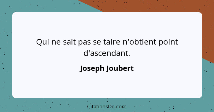Qui ne sait pas se taire n'obtient point d'ascendant.