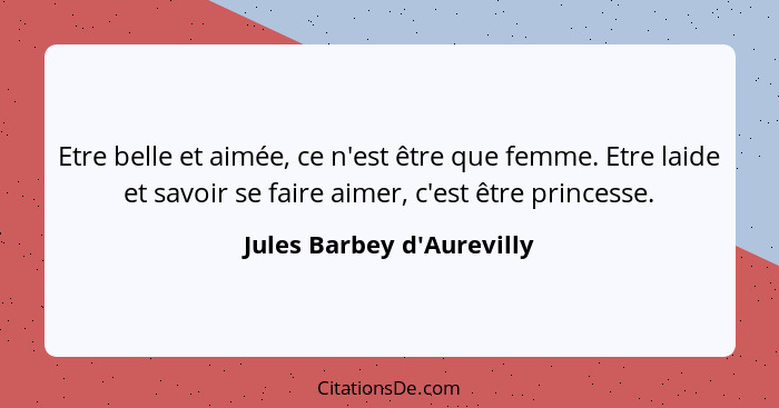 Etre belle et aimée, ce n'est être que femme. Etre laide et savoir se faire aimer, c'est être princesse.