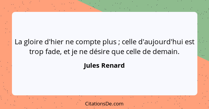 La gloire d'hier ne compte plus ; celle d'aujourd'hui est trop fade, et je ne désire que celle de demain.