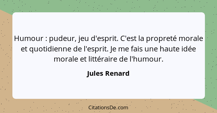 Humour : pudeur, jeu d'esprit. C'est la propreté morale et quotidienne de l'esprit. Je me fais une haute idée morale et littéraire de l'humour.