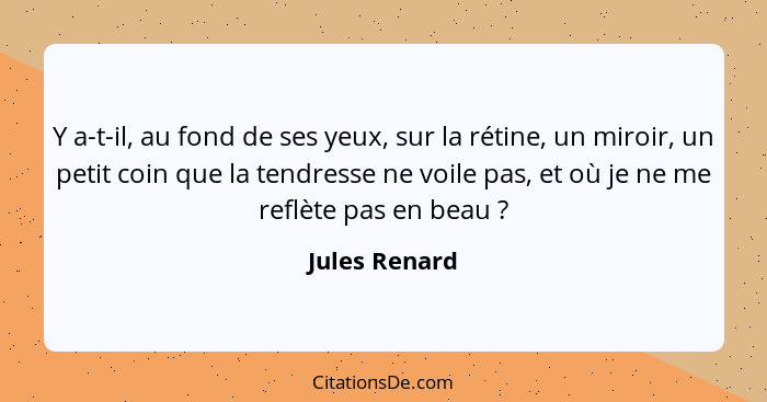 Y a-t-il, au fond de ses yeux, sur la rétine, un miroir, un petit coin que la tendresse ne voile pas, et où je ne me reflète pas en beau ?