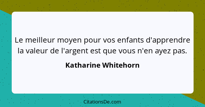Le meilleur moyen pour vos enfants d'apprendre la valeur de l'argent est que vous n'en ayez pas.
