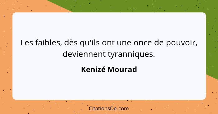 Les faibles, dès qu'ils ont une once de pouvoir, deviennent tyranniques.