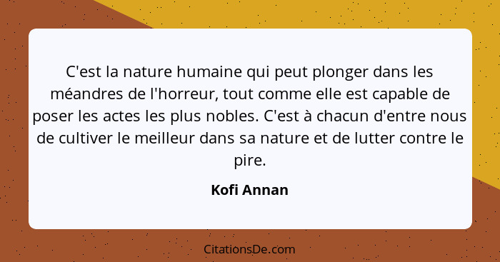 C'est la nature humaine qui peut plonger dans les méandres de l'horreur, tout comme elle est capable de poser les actes les plus nobles. C'est à chacun d'entre nous de cultiver le meilleur dans sa nature et de lutter contre le pire.