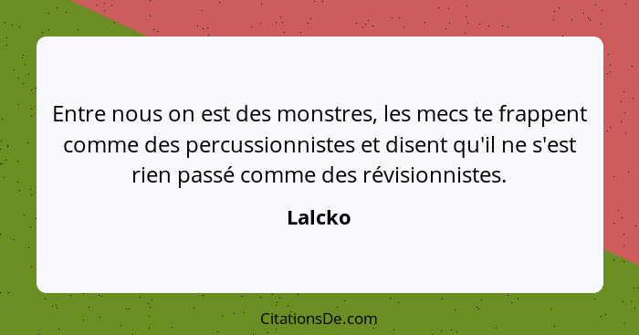 Entre nous on est des monstres, les mecs te frappent comme des percussionnistes et disent qu'il ne s'est rien passé comme des révisionnistes.