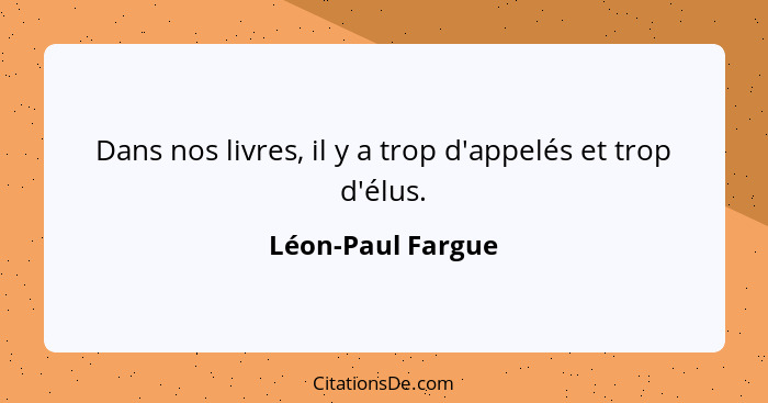 Dans nos livres, il y a trop d'appelés et trop d'élus.