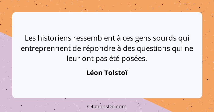 Les historiens ressemblent à ces gens sourds qui entreprennent de répondre à des questions qui ne leur ont pas été posées.