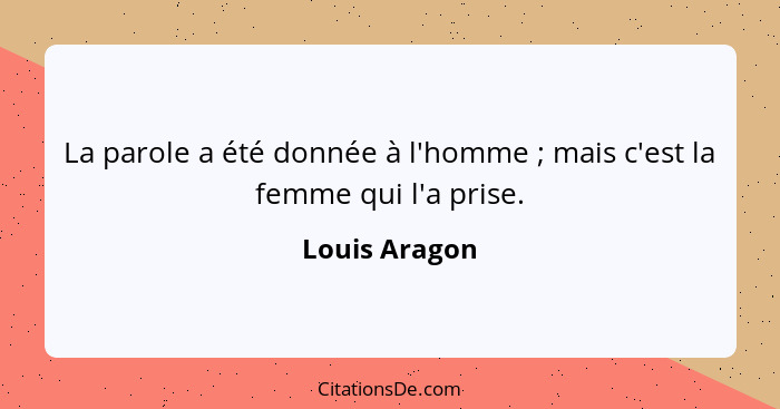 La parole a été donnée à l'homme ; mais c'est la femme qui l'a prise.