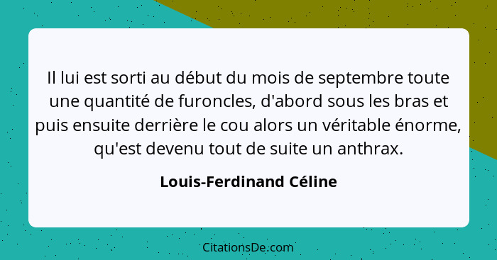 Il lui est sorti au début du mois de septembre toute une quantité de furoncles, d'abord sous les bras et puis ensuite derrière le cou alors un véritable énorme, qu'est devenu tout de suite un anthrax.