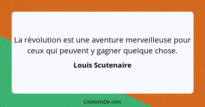 La révolution est une aventure merveilleuse pour ceux qui peuvent y gagner quelque chose.