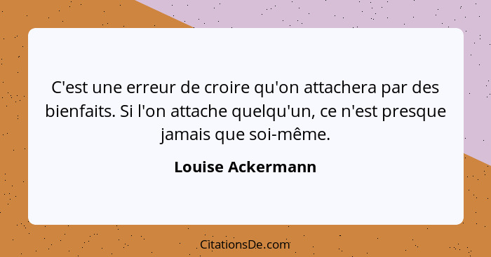 C'est une erreur de croire qu'on attachera par des bienfaits. Si l'on attache quelqu'un, ce n'est presque jamais que soi-même.