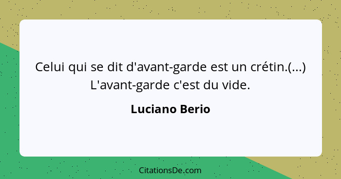 Celui qui se dit d'avant-garde est un crétin.(...) L'avant-garde c'est du vide.