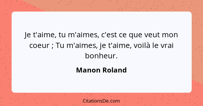 Je t'aime, tu m'aimes, c'est ce que veut mon coeur ; Tu m'aimes, je t'aime, voilà le vrai bonheur.