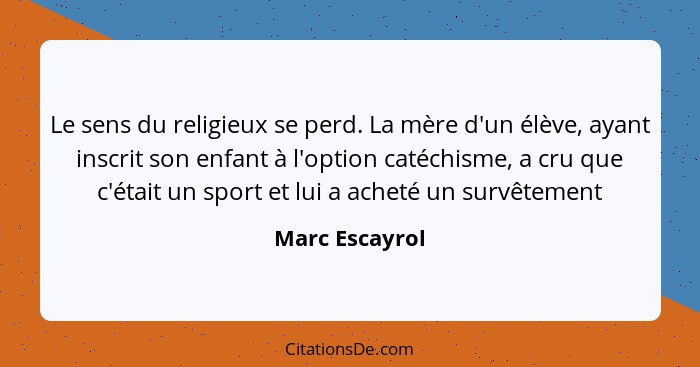 Le sens du religieux se perd. La mère d'un élève, ayant inscrit son enfant à l'option catéchisme, a cru que c'était un sport et lui a acheté un survêtement