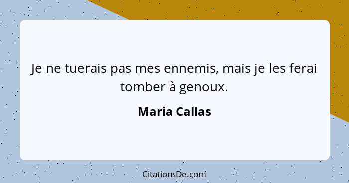 Je ne tuerais pas mes ennemis, mais je les ferai tomber à genoux.