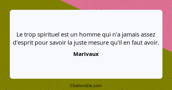 Le trop spirituel est un homme qui n'a jamais assez d'esprit pour savoir la juste mesure qu'il en faut avoir.