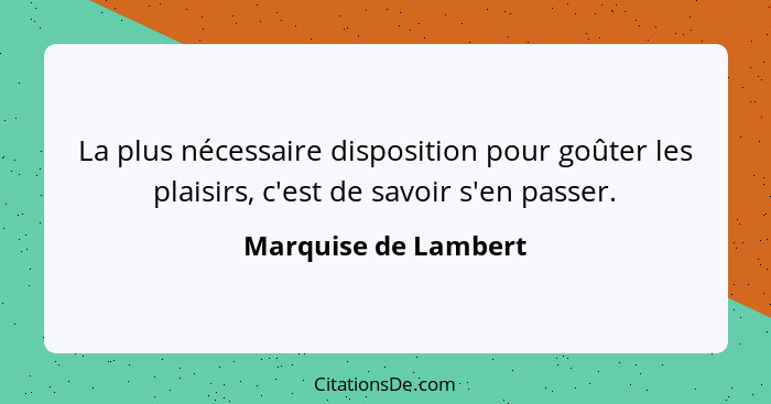 La plus nécessaire disposition pour goûter les plaisirs, c'est de savoir s'en passer.